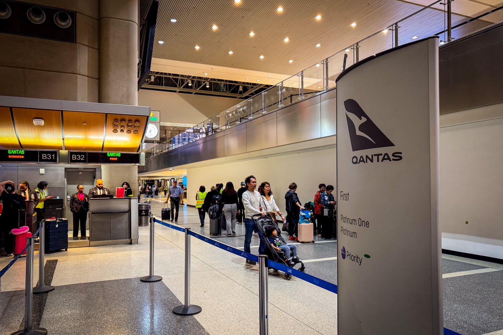 Qantas flights out of LAX depart from the Tom Bradley International Terminal, and first-class passengers can enjoy the following priority services at the airport.