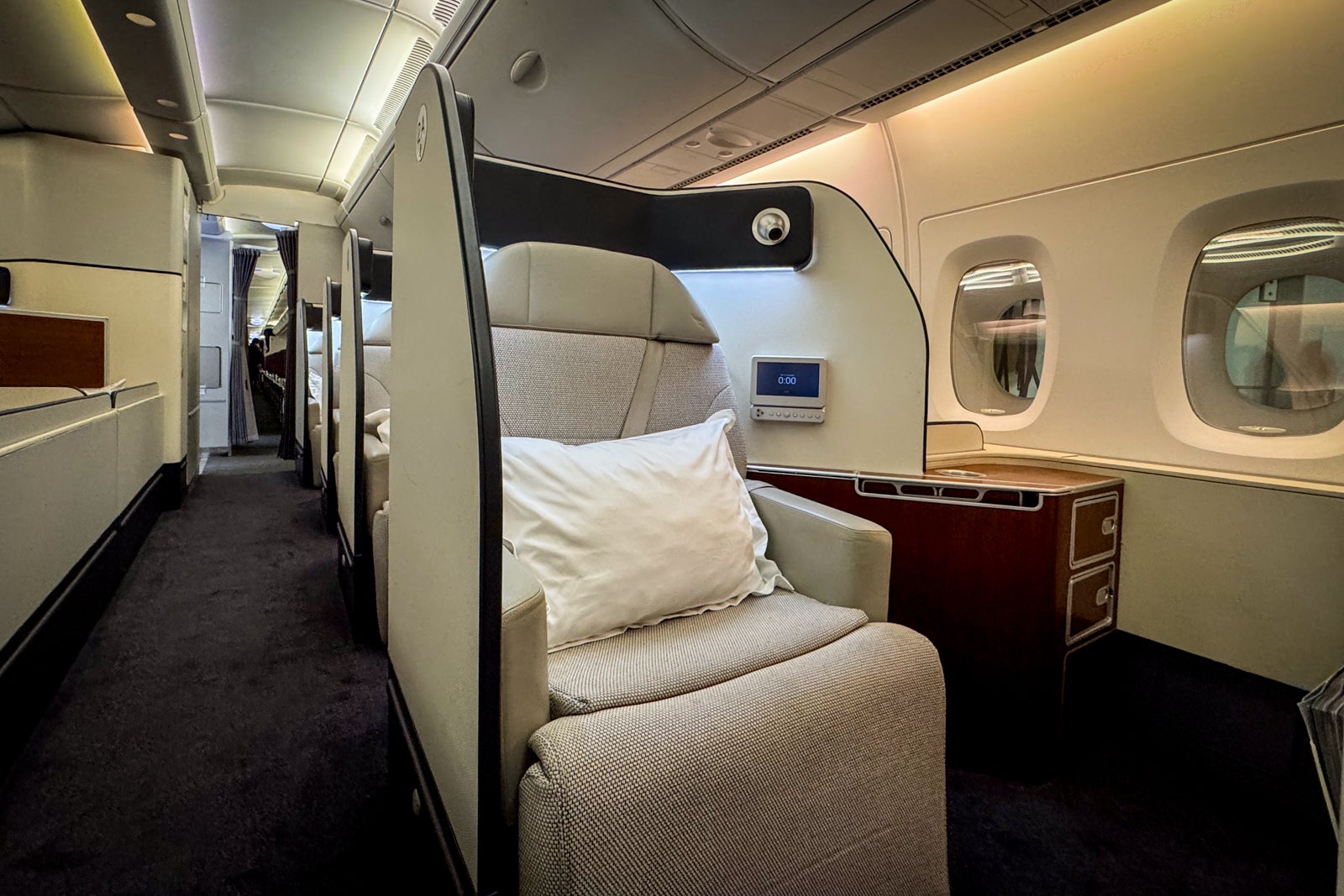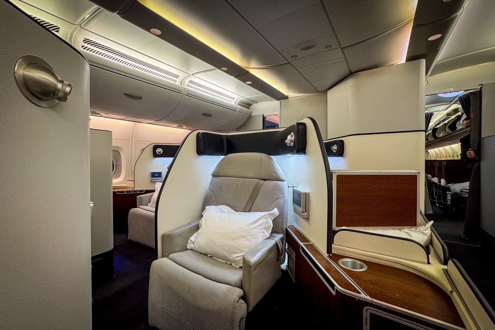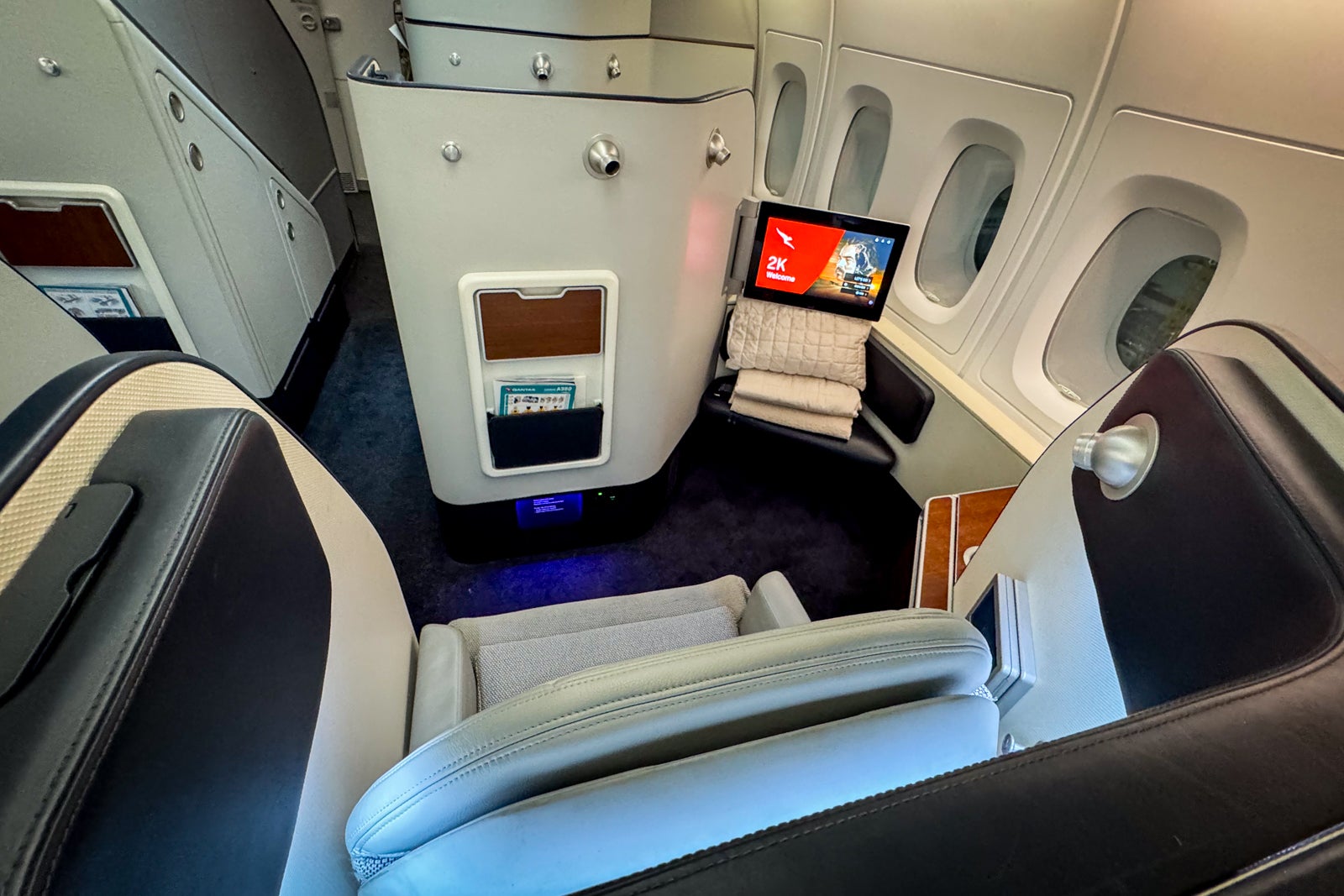Though the seats are not the most contemporary (we’ll have to wait for the airline’s A350s to go into service for the next generation), they are still comfortable and spacious. The soft touches are where Qantas first class truly shines, though, with excellent bedding, premium Aesop amenity kits, extensive dining options and crew members who seem to truly love what they do.