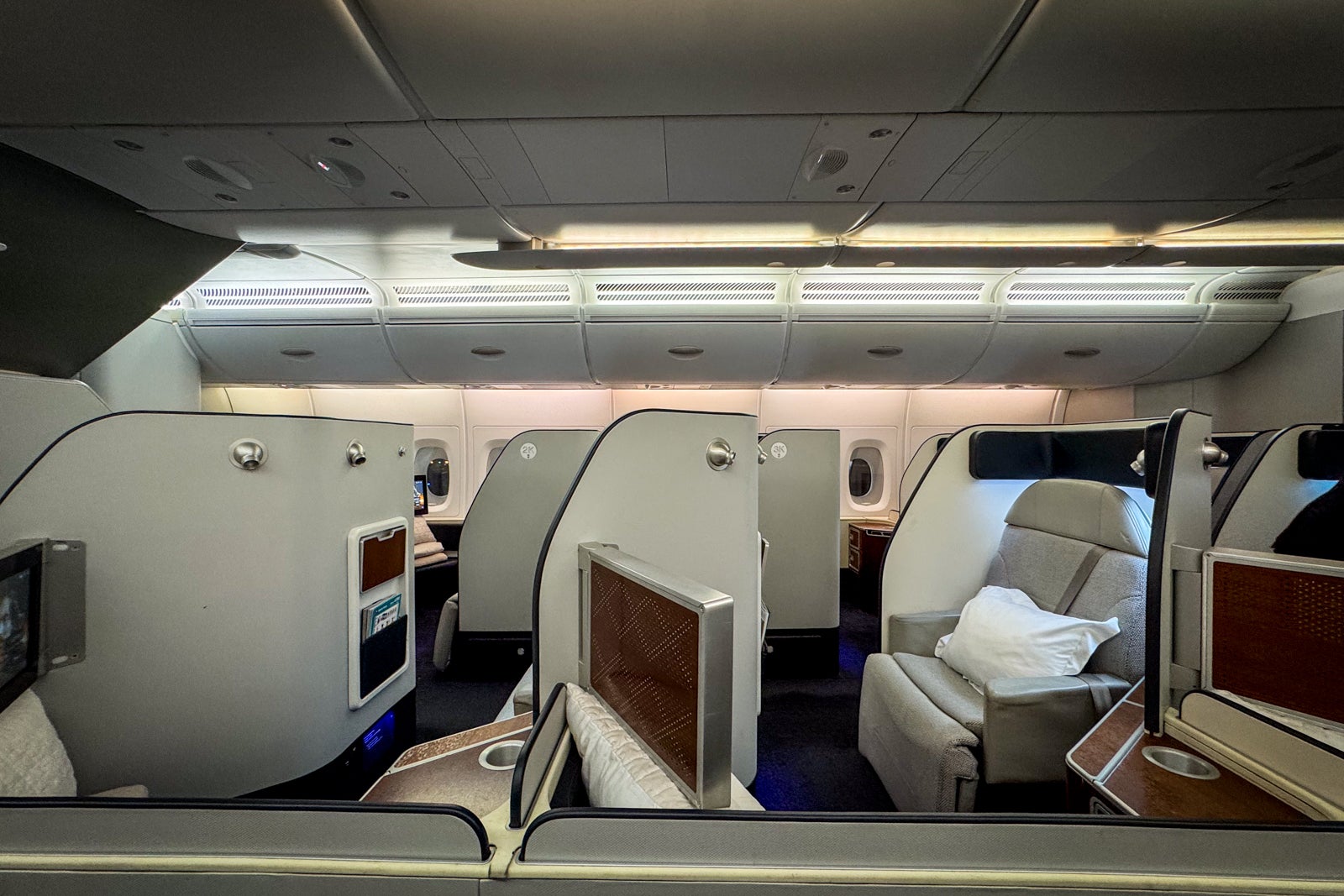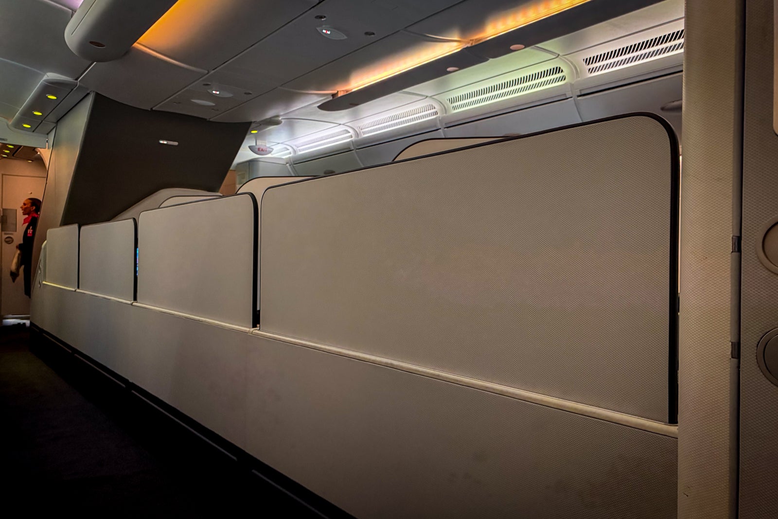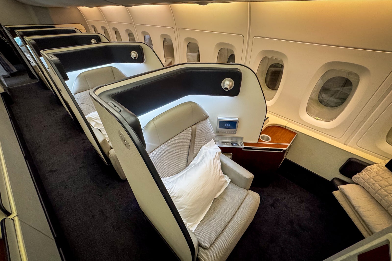 This particular seat had the added benefit of extra elbow room since it was also configured for a bassinet. Once I raised the front privacy divider on my seat, I could not see or hear my neighbor in Row 4, either.