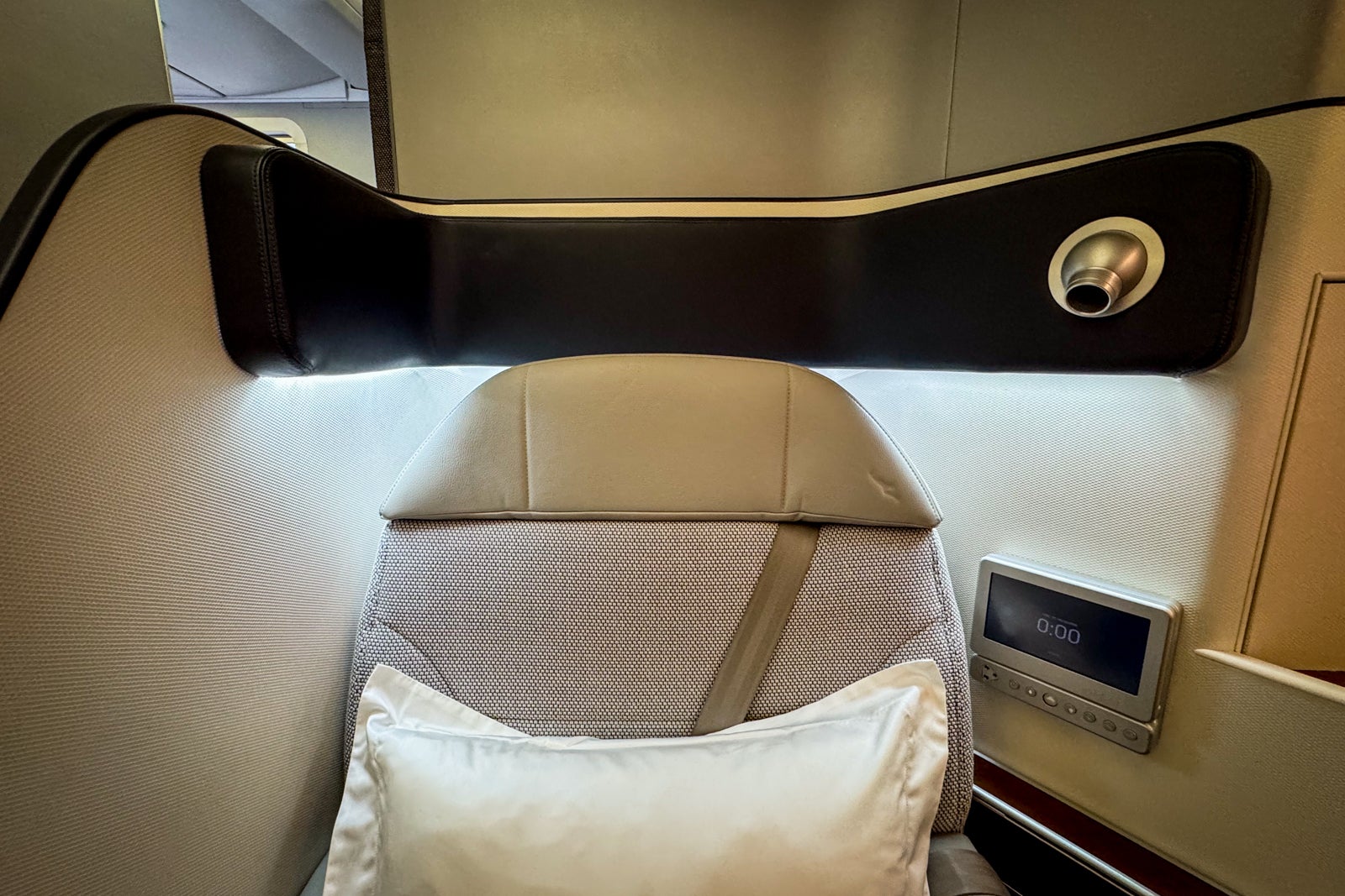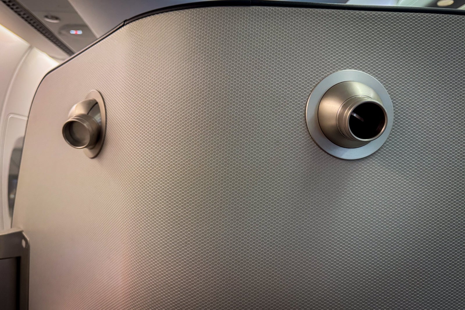 There are no individual air nozzles overhead, but there is one embedded in the seatback itself and another near the entertainment screen, so I could keep my personal area cool throughout the flight.