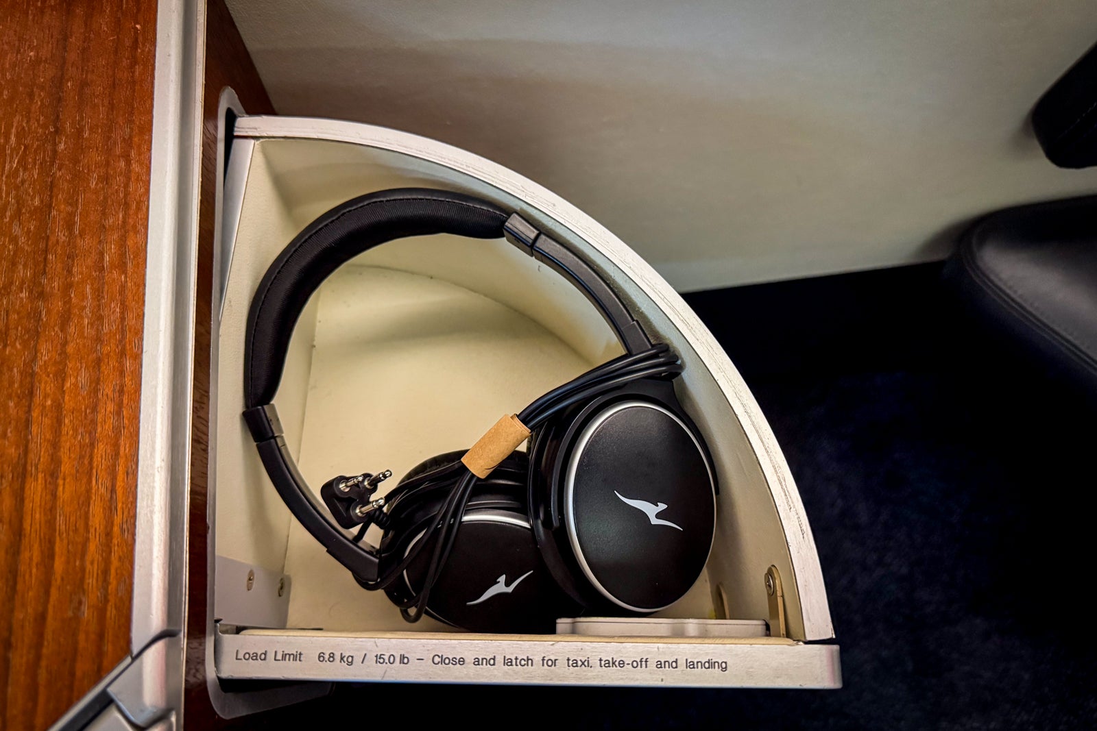 The airline provides basic noise-canceling headphones that function fine. Unfortunately, there’s no Bluetooth connectivity, so you can’t use your own more advanced set with the system.