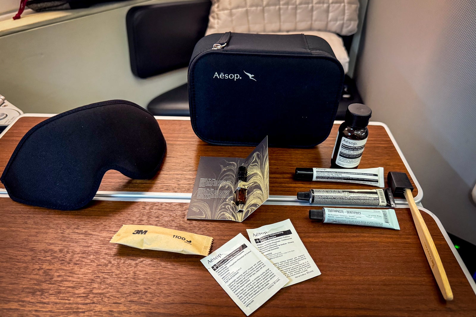 Then, Diana brought over a substantial amenity kit from high-end Australian skin care brand Aesop.