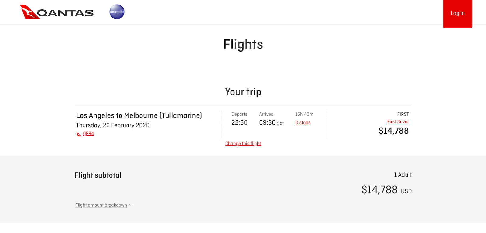 How much does it cost to book Qantas first class?